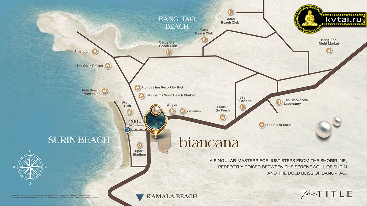 The Title Biancana расположен в эпицентре курортной жизни западного Пхукета. Помимо близости к пляжу, резиденты получают быстрый доступ ко всей необходимой инфраструктуре.